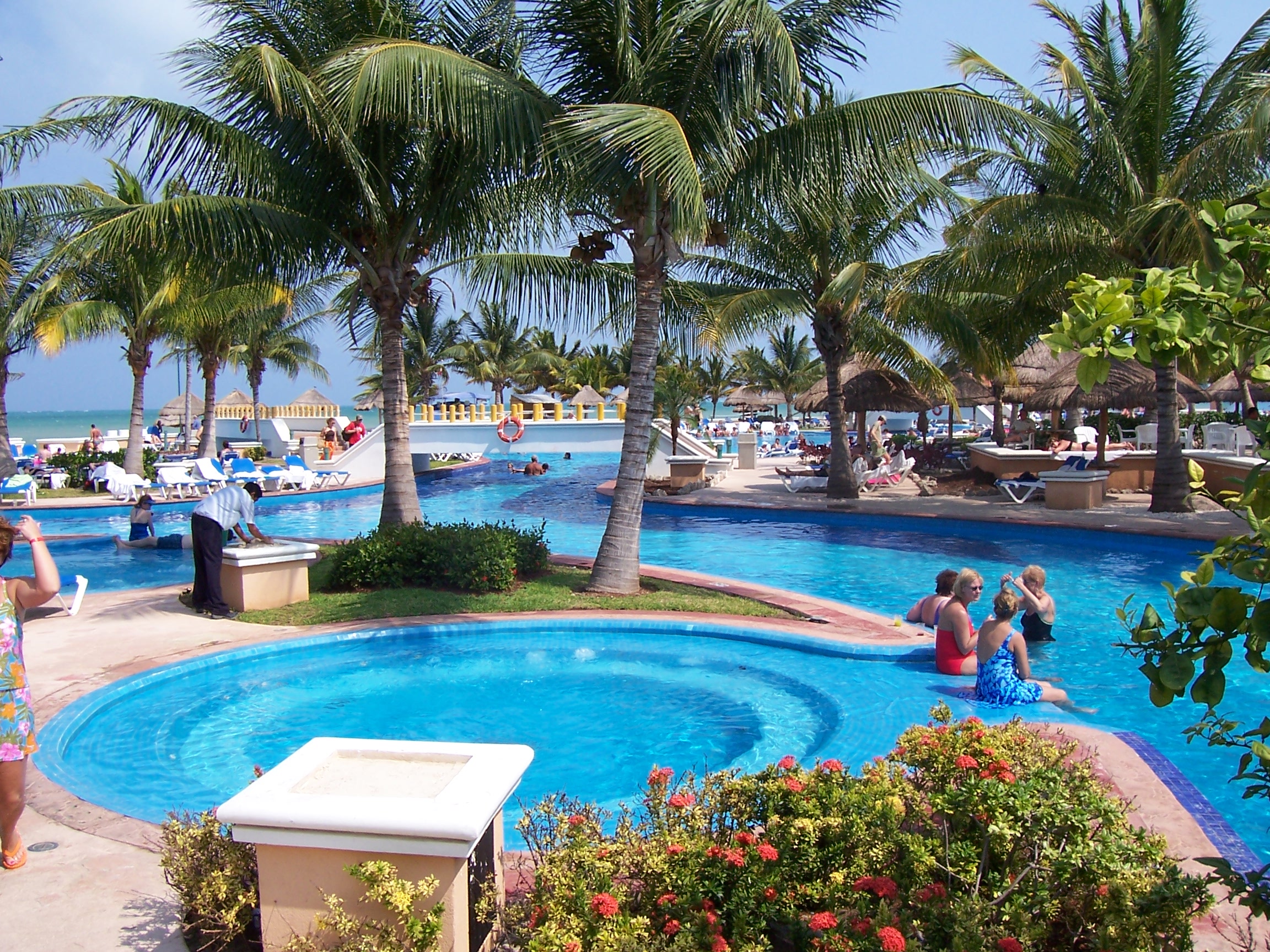 The Moon Palace Golf & Spa Resort is one of several all-inclusive resorts. Located along a secluded white sandy beach with tropical foliage covering 123 acres, this resort is a destination. All rooms offer private balcony, Jacuzzi-built-for-two and amenities you'd expect from a first-class resort. The two swimming pools are among the largest lagoon-style pools in Mexico, outlining the beach over 650 feet, offering Jacuzzis, swim-up bars, children areas, water volleyball and poolside dance lessons. There is a fully equipped marina with diving, snorkeling, kayaking, windsurfing and paddleboats. Add six tennis courts, two basketball courts, two fitness centers, beach volleyball, miniature golf, billiards, bicycles, and in-line skates and there is little reason to leave.