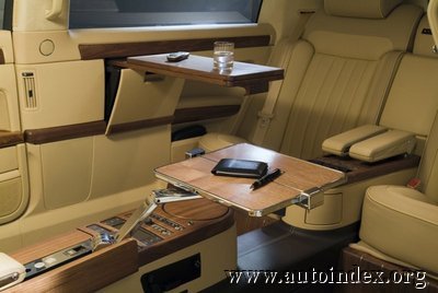 In the passenger compartment there are four chairs with individual climate controls. Between the rear seats there's a fridge and wine glasses are also at hand. There are DVD players with 17" screens and Internet capability.