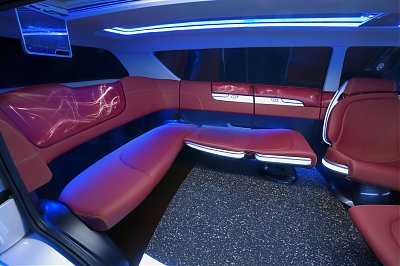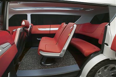 The lounge mode would be useful any time the vehicle is not moving, Schneider said, adding, "It would be ideal when you take the kids to games or sporting events, or when you're just hanging out with friends. It's a living room away from home." But if the F3R is a living room away from home, it also offers a very comfortable and very useable motor-vehicle interior. Seating, in transport mode, is stadium-style, with each row just a little higher than the row in front of it to provide optimal passenger comfort and visibility. And it provides convenient three-door access on both sides to reflect adult-size space in all three rows.