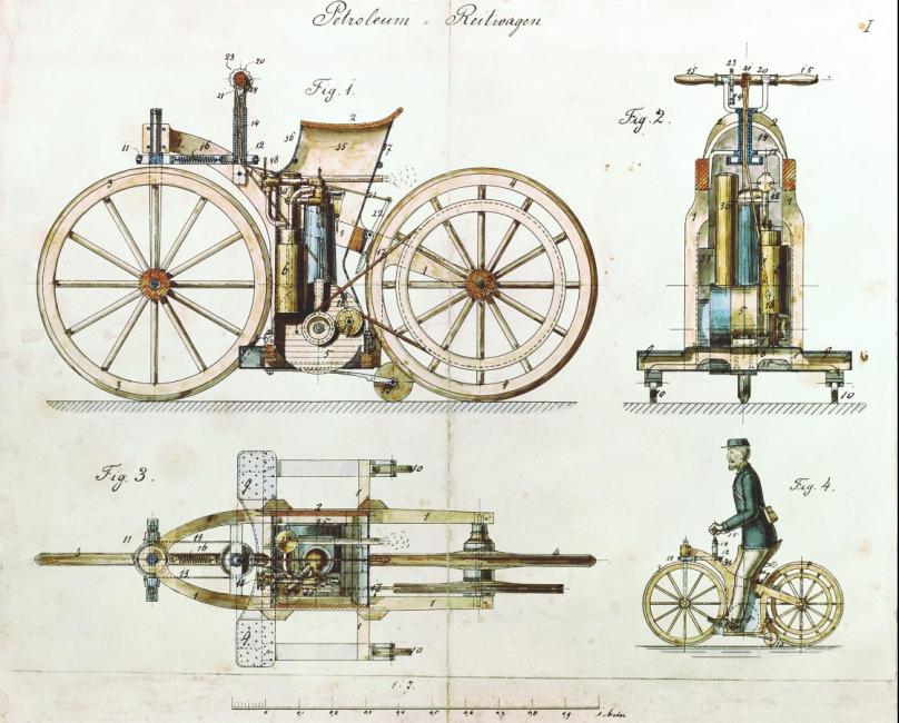 Benz created innovative technology with classic engineering methods: a small horizontal, single-cylinder four-stroke engine running on gasoline, electric ignition, carburetor, water-cooled radiator, steering and tubular frame. With these features, the first motor car came into being in 1886. The vehicle was an absolute original. All automobiles produced since that time stand as heirs of the Patent Motor Car.