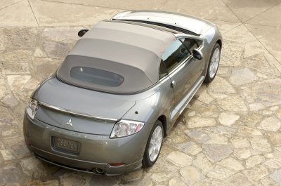 Based on the fourth-generation Eclipse coupe introduced in spring 2005, the new Eclipse Spyder features a high-tech cloth convertible top that folds completely out of sight under a flush-fitting powered tonneau cover in about 19 seconds, and a standard 650-watt Rockford Fosgate premium audio system specifically engineered for the Eclipse Spyder that provides unique automatic sound equalization for top-up or top-down driving.
