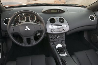 Both the GS and GT models offer a long list of standard equipment including 17-inch alloy wheels, fog lamps, air conditioning, advanced dual-stage front air bags and seat-mounted side air bags, anti-lock braking system (ABS) with electronic brake-force distribution (EBD), cruise control, engine immobilizer, keyless entry and power windows, locks and mirrors. The Eclipse Spyder GT adds standard electronic traction control and an outside temperature and compass display to the GS-level equipment.