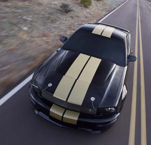 Extra "Show"Like its predecessor, the 2006 Ford Shelby GT-H will be instantly recognizable – thanks to several eye-catching styling enhancements that are so much a part of the Shelby Mustang heritage. First and foremost, each Shelby GT-H will wear Black exterior paint set off with Gold racing stripes, a hallmark of Hertz’s vehicle history dating all the way back to the 1920s.