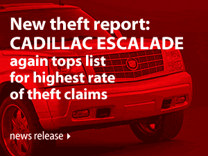"The overall results show the Escalade has not only the highest rate of claims but also very expensive claims when they are filed," says Kim Hazelbaker, HLDI senior vice president. "In fact, almost one-quarter of theft claims for the Escalade are for $40,000 or more, indicating that thieves often are stealing the whole vehicles and not just their parts."