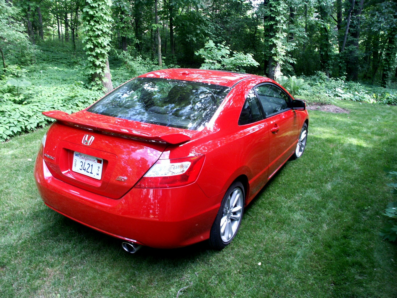 The Si comes with 17-inch alloy wheels fitted with 215/45R17 Michelin all-weather tires. Z-rated tires are available for those who want to go really fast – or think they do. Suspension is independent all around with McPherson struts in front and reactive-link double wishbones in the rear. The power assisted rack-and-pinion steering is quick and turning radius is amazing, I found out when I turned down the wrong narrow street while shunpiking home on that first day. What this all means is quick, precise handling but with a reasonably easy ride. I didn’t find the Si’s ride to be unpleasantly harsh at all, though it is certainly a performance car.