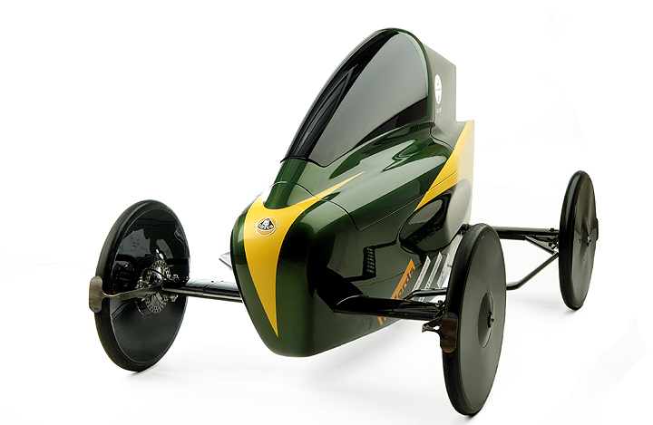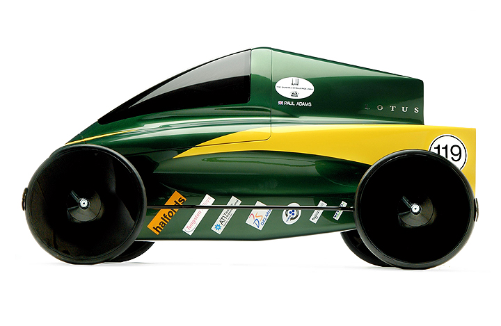 NORFOLK, UK - July 11, 2006: The Lotus Type 119c soapbox, the record-holding downhill gravity racer, is to make its second competitive appearance at the Brooklands Museum Soapbox Derby on 16 July, 2006. The Type 119c soapbox is the reigning champion and record holder of the challenging 0.7 mile descent at the Goodwood festival of Speed Gravity Racing Club Soapbox Challenge.