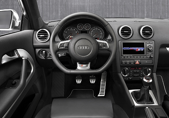 The extras also include a leather steering wheel with flat-bottomed rim and – in the quattro GmbH range – folding bucket seats. In the infotainment area, Audi is presenting a new generation of audio systems. The premium package is rounded off by universal interfaces for mobile phone and iPod, plus a sound system from Bose. Standard equipment includes deluxe automatic air conditioning, a driver information system with a new lap-timer function, and an anti-theft alarm. Front fog lights and xenon plus headlights with daytime running lights underline the impressive price/performance ratio. The basic price of the 265 bhp Audi S3 in Germany is EUR 35,150 ($44,985 USD equivilent).