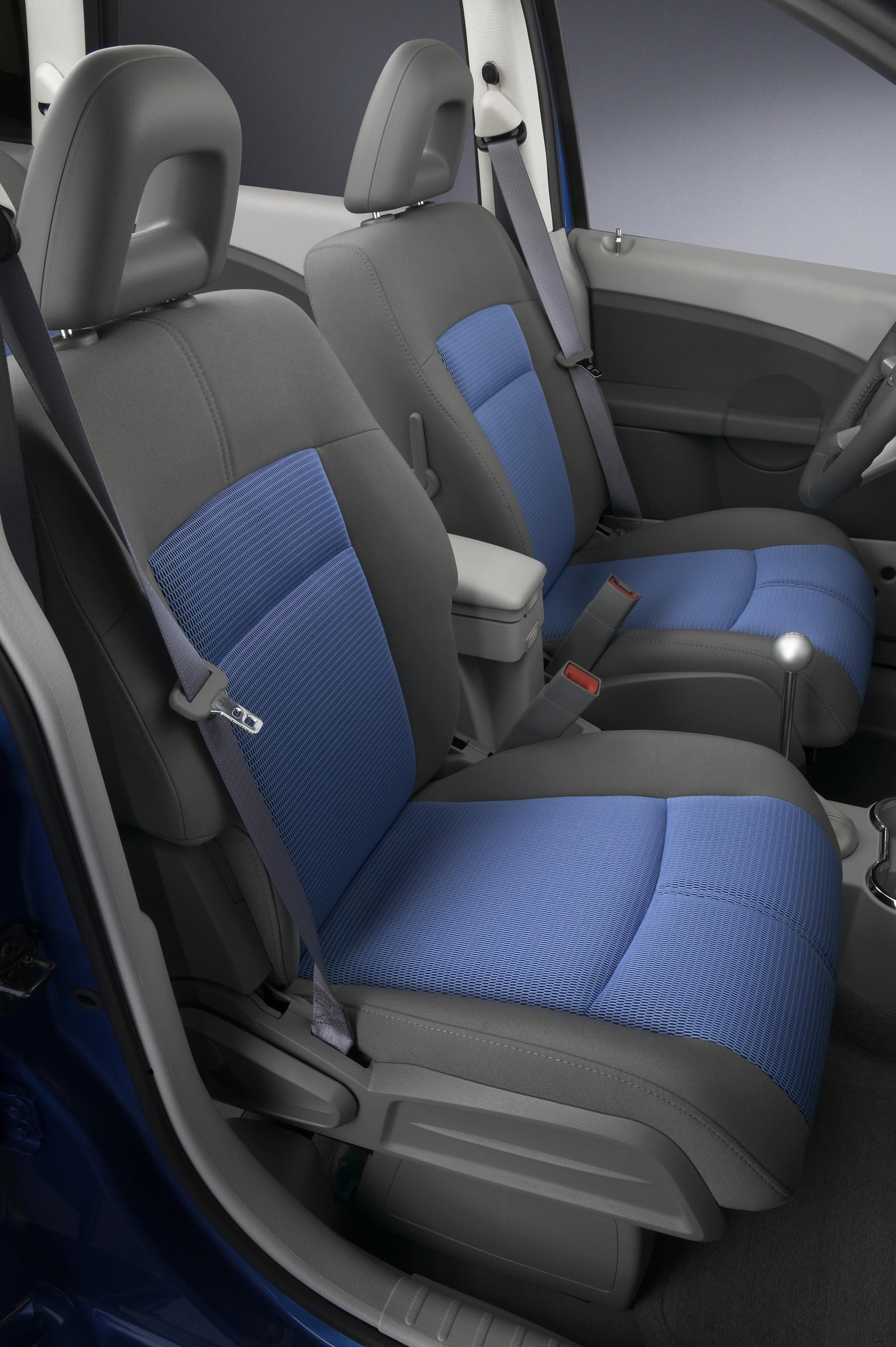 The 2007 Chrysler PT Cruiser Street Cruiser Pacific Coast Highway Edition's interior also is a breath of fresh air, featuring a two-tone interior of Slate Gray and Pastel Slate Gray. Medium Slate gray Albi II premium cloth seats with Ocean Blue Alias seat inserts match the vehicle's exterior and include a six-way power driver seat and driver manual lumbar adjuster. The Pastel Slate Gray door trim has Medium Slate vinyl bolsters. The instrument panel features a Satin Silver cluster bezel with an Ocean Blue overlay and Satin Silver passenger air bag door. The Pacific Coast Highway Edition also offers a leather-wrapped steering wheel, and many bright interior accents, including Satin Silver steering wheel spokes, cupholder rings, door lock knobs, automatic shifter bezel and shift ball. A bright Chrysler winged logo accents the front door scuff pads. Standard SIRIUS Satellite Radio keeps the driver connected, even if the road takes them out of commercial radio range. The vehicle's standard AM/FM radio with single-disc CD player has MP3 play capability, as well as an audio-input jack that can be used to connect portable MP3 players or other auxiliary audio devices.