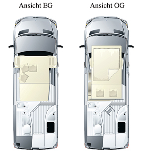The new layout brings together the advantages of the previous generations of the James Cook: the living area is made up of a bench seat and the swivelled front seats while the rear section (viewed in the direction of travel) comprises the washroom and wardrobe on the left and the kitchen on the right. Innovative technology has always been one of the hallmarks of the James Cook and the new generation is no exception: there is the bench seat/bed unit, an all-new, patented design with a new pivoting mechanism and a bed with a sprung base; a hot-water-based heating system with convectors which can be complemented with optional underfloor heating (available in the first half of 2007); combined glass/plastic side windows and the elegant high roof of the James Cook Classic with an integrated awning: as always, the new James Cook sets new standards.