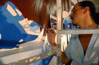 Once the outline was complete, Pardo transported the canvas to his Detroit studio for painting.