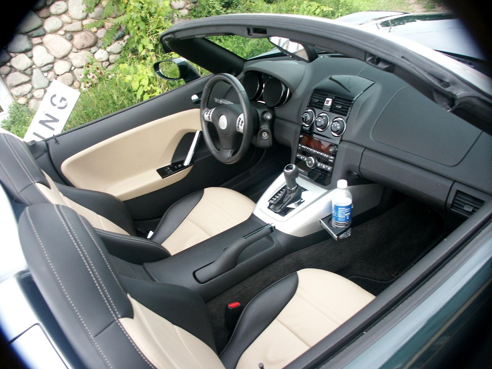 Sky has considerably different styling queues than its Pontiac sibling. Both have the dramatic 18-inch painted aluminum wheels (plenty big for such a little car), but Sky includes faux hood vents, side vents, more complex grille with chrome, and just a generally more sophisticated look.