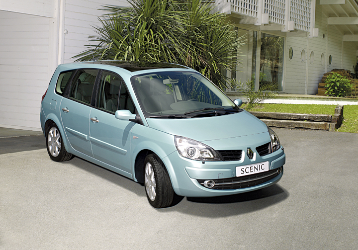 PARIS - September 22, 2006: Renault's new Scénic allows consumers to customize their interior space with a choice of five-seat Scénic, five-seat Grand Scénic (with extra boot space) or seven-seat Grand Scénic. Its updated features include a new front bumper, re-designed headlamps, LED rear lights and new wheels and wheel trims.