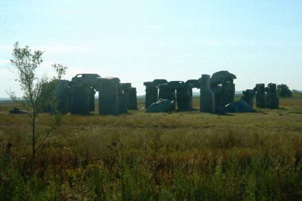 The original Stonehenge was built by the Druids before there was dirt. But this replica in the western prairie is made entirely of old cars. They’re stuck into the ground, they’re upright, they’re accurately stacked and positioned just like the Druad masterpiece half a world away.