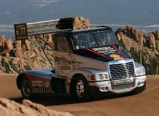 North Hollywood, California-? Mike Ryan, nine time champion and current record holder in the big rig class at the Pikes Peak International Hill Climb? www.ppihc.co? will be attending the SEMA (Specialty Equipment Market Association) show on October 29-November 3, 2006 at the Las Vegas Convention Center in Las Vegas, Nevada. Ryan?s?one- of- a -kind hand-built Freightliner Century ClassҼ/SPAN>? S/T Ҽ/SPAN> race truck will be exhibiting as one of the premiere vehicles.? Weighing 8,000 pounds speeds have reached over 100 mph.? Ryan set his 5th new record at the 2006 Pikes Peak International Hill Climb with a time of 12:43.66.? www.fastrucks.com?