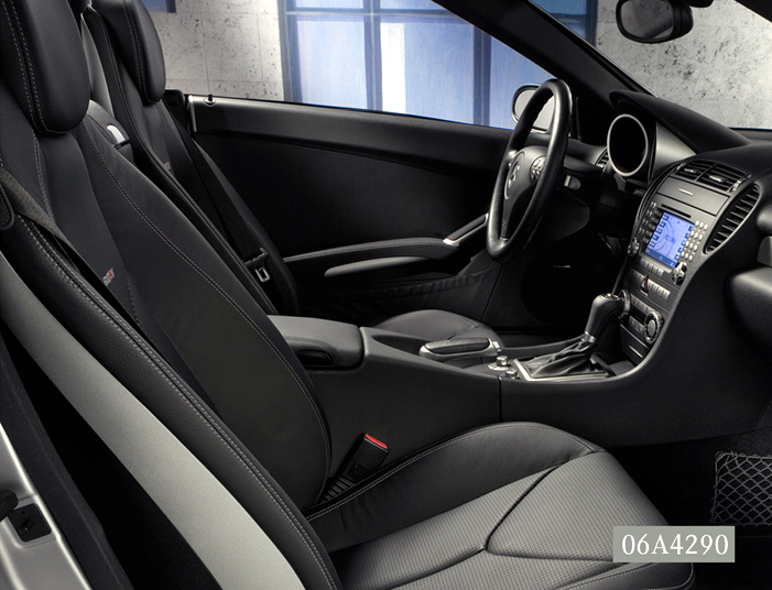 The new SLK-Class launched in March 2004 asserts its sporty nature even more emphatically, while setting further trends with its trailblazing technology. In addition to a further development of the vario-roof, which opens even more rapidly and occupies less space in the boot, the innovative neck-level heating system AIRSCARF celebrated its world debut in the new-model Mercedes sports car. This acts like an invisible scarf that warms the head, neck and upper shoulder area. Accordingly the SLK-Class is also able to guarantee open-air driving pleasure in colder weather, as SLK owners are able to drive with the top down for longer and more often thanks to AIRSCARF.