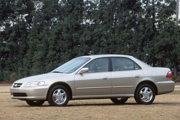 In the meantime, however, you can get a little more oomph by ordering a V-Tec engine with the upscale EX-R model. This unit has variable valve timing, which adds another 15 horsepower...and another $4000 to the bill. The new Accord is also the first model since 1982 that is not larger than its predecessor. Interior and exterior dimensions are about the same, which is to say, smaller than the Chrysler Intrepid, for example (a direct competitor), and about on a par with the Camry. With the back seat folded down, the four-door has an adequate 2682 litres of cargo space.