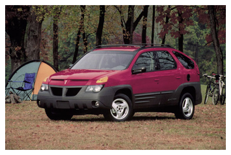 Having said that, I also recognize that another equally homely vehicle, the Toyota Echo, is selling like hot-cakes, so what do I know? And I have to admit that I’ve never driven a vehicle with as much disparity between its physical appearance and its driveability. Behind the wheel, the Aztek is actually a pleasure to drive.