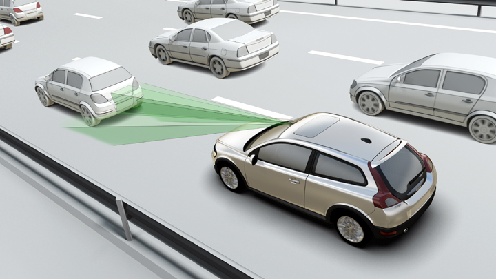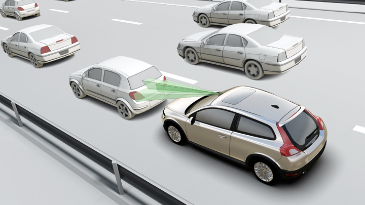 If the vehicle in front suddenly brakes and the City Safety senses that a collision is likely to happen it will pre charge the brakes to help the driver to avoid an accident by braking or let the driver steer away from a potential collision. However, when the system senses that a collision is imminent, the car will brake automatically through hydraulic pump activation.