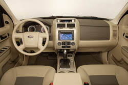 Also improving ease-of-use is the clean, uncluttered center console. Rather than the traditional “brick” design for the radio and temperature controls, Escape features dials and buttons that “poke-through” the center console. The instrument panel houses audio and climate controls, a standard MP3/iPod audio jack, and controls for the available heated seats and in-dash navigation system.
