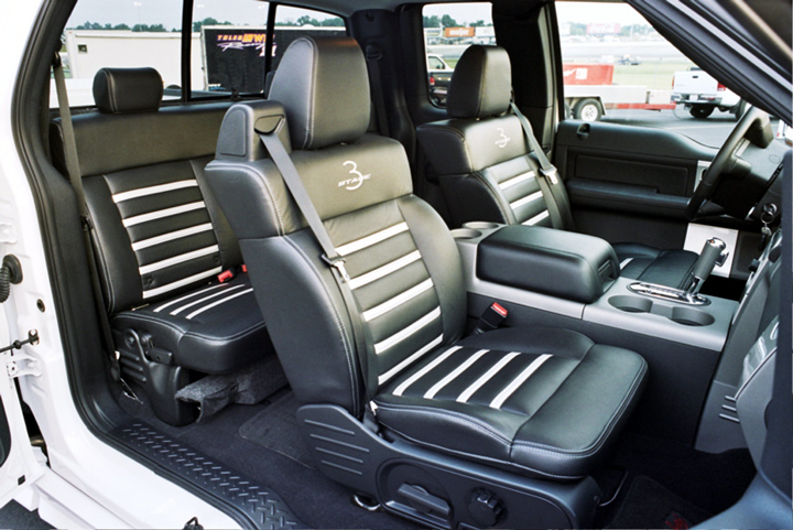 Inside, the look carries through on the exterior's enthusiasm. The Stage 3 logos top the front buckets. Silver strips cross the seats, and match the silver Roush trim package that dresses up the doors and center stack.