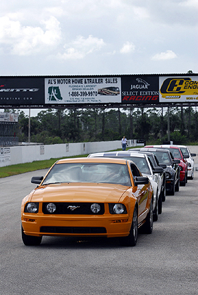 ![]() This line of Mustangs awaited us and provided an excellent comparison between the various flavors of Mustangs. A standard Mustang GT is at the head of the line. |