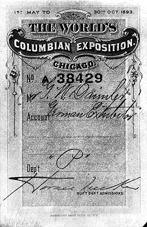 Admission ticket: In 1893, Gottlieb Daimler exhibited an automobile and a boat