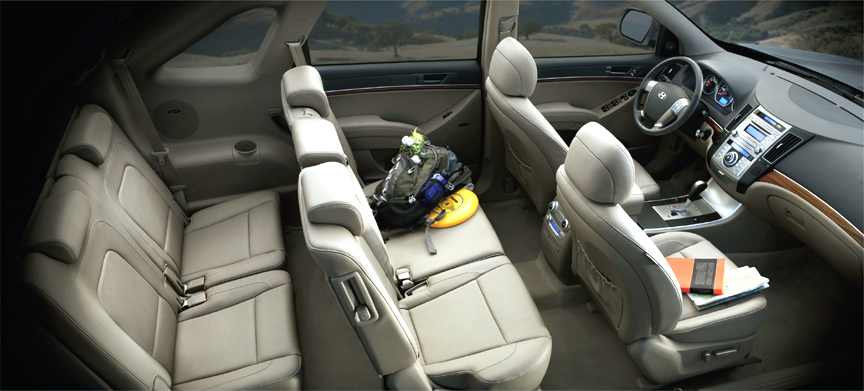 Inside, passengers are coddled in a rich, sophisticated environment that was inspired by boutique hotels. The result is an interior that could be found in the finest luxury sedans thanks to Hyundai's intelligent ergonomic engineering, intuitive design, and superior craftsmanship. Hyundai has combined space with elegance including conveniences that exceed expectations. For example, although the Veracruz is 9.7 inches shorter than the Mercedes Benz GL, it has more cargo volume.