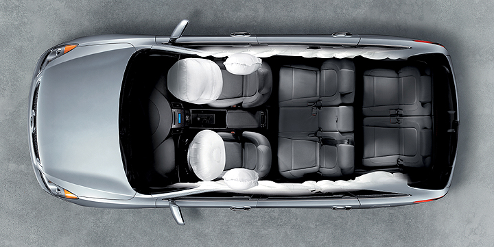 Veracruz's passive safety features are equally impressive, beginning with six total airbags, including advanced dual front airbags, front seat-mounted side-impact airbags and roof-mounted side curtain airbags for all three rows of seating. In addition, active front head restraints help prevent whiplash. All seating positions feature three-point seatbelts, while the second and third row also have adjustable head restraints. Security is further provided through the standard alarm system and available engine immobilizer.