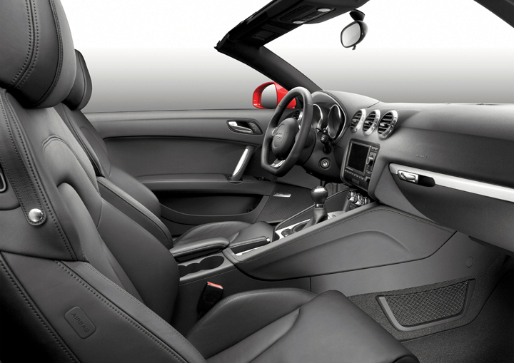 The TT Roadster 3.2 quattro comes as standard with an electrohydraulically powered soft top, which is available for the 2.0 TFSI as an option. This version of the soft top opens in just 12 seconds at the push of a button, and can even be operated on the move at speeds of up to 30 mph. The fully automatic hood incorporates an additional layer of soundproofing beneath the black headliner for even better acoustic and thermal insulation.