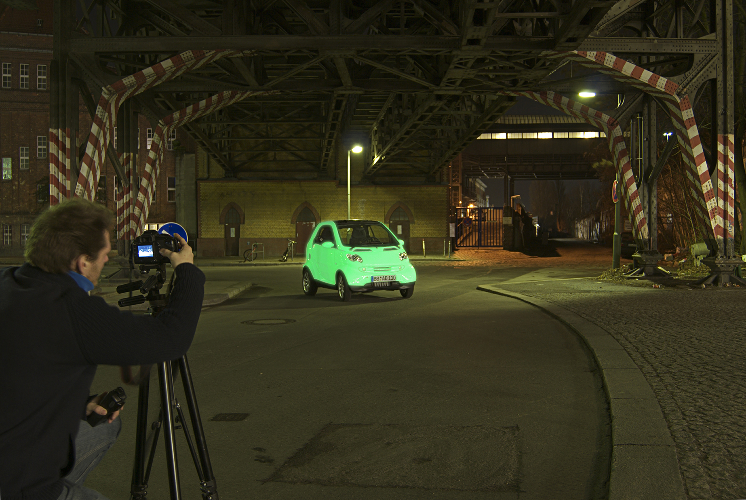 They use the smart fortwo as an experimental light source that reacts to different influences like a photographic exposure process. With special luminescent green paintwork the smart fortwo reflects its environment and presents the city in its own special way.