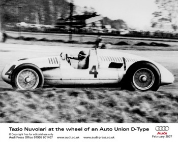 The car was modified in 1939 with the addition of a twin compressor, which increased its engine power output from 420 to 460PS. Its top speed was 205mph and it was driven to victory at the Grand Prix in France and Yugoslavia. The top drivers of the Auto Union Type D racing car were Tazio Nuvolari, H.P. Müller, Hans Stuck, Rudolf Hasse and Georg Meier.