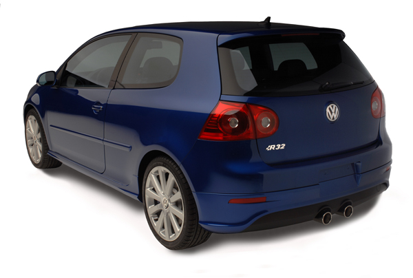 With a fully independent multi-link rear suspension that sits wider and lower than its GTI sibling, the R32 flaunts its authority both inside and out. Twin chrome exhausts, 18-inch alloy wheels, Bi-Xenon headlights, a uniquely shaped front grille and R32 badging distinguish this car from anything else on the road. A rear roof spoiler and deep front spoiler, coupled with body-colored bumpers, side bump strips, door handles and door mirrors, add to the streamlined, sporty look.