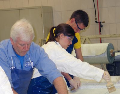 Students and represented UAW employees will work side-by-side in early February to complete the production implementation phase by coating the milled foam pieces with fiberglass cloth and resins that will harden to form the upper, lower, and flange molds.