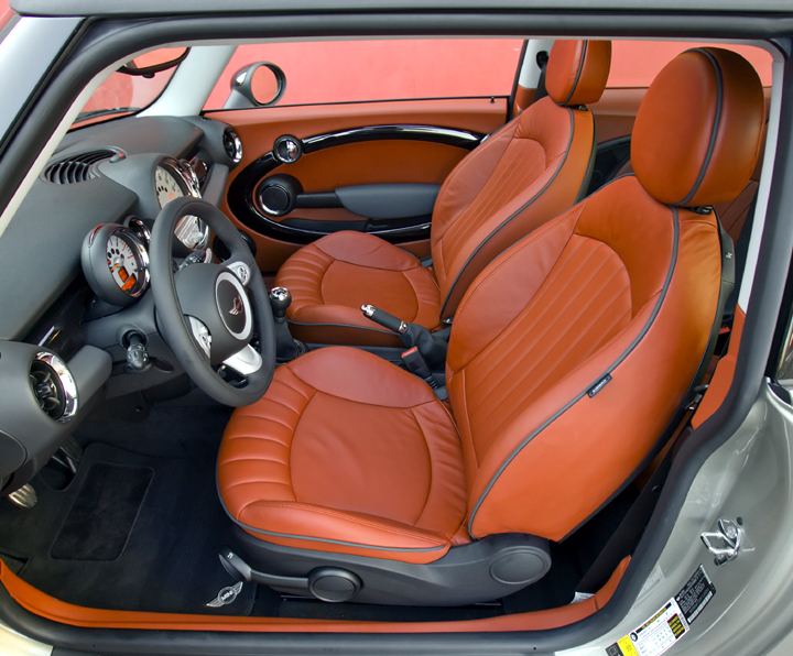 Natural wood, hand-sewn leather, and classy chrome as special interior options. Available with a wide range of attractive options and special equipment, the new MINI meets all the demands of even the most discerning individualist. Featuring appealing materials such as natural wood and hand-sewn leather with their wonderful, unique fragrance, the interior arouses the emotions of even the most demanding MINI customer. And with the help of various trim features as well as the Color Line Package available in different colors, the interior can be adjusted perfectly to the personal taste and preference of the individual driver.