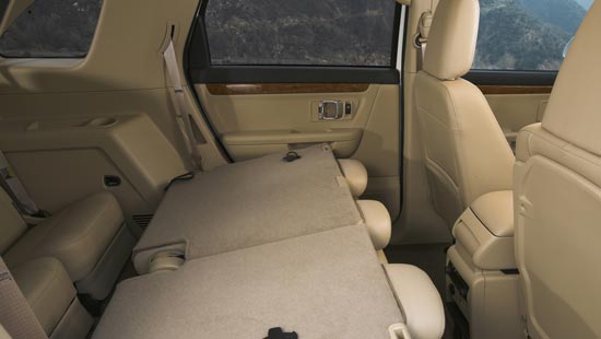 Our test car this week is the Limited 3Row AWD in a pretty shade of Prairie Gold Metallic. The only option listed on the sticker is the $2,200 Platinum Touring Package that consists of the touch screen navigation system, power tilt and slide sunroof and 17-inch chrome wheels. The $300 charge for XM Satellite radio is listed then taken off with the notation, “XM radio credit.” Our test car did not have the service hooked up. Base price on the sticker is listed at $29,549, which includes the all-wheel drive. So the bottom line is $31,749. No charge for destination and handling.