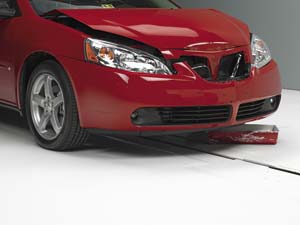 "A big problem is that the Maxima, G6, and Passat underrode the barrier," Lund says. "Our research shows that this is also what happens in many real-world crashes. The bumper bar on the Passat, which is supposed to take the hit and absorb the energy in the crash test, wasn't even damaged. The car's grille, hood, fenders, and headlights were damaged instead."
