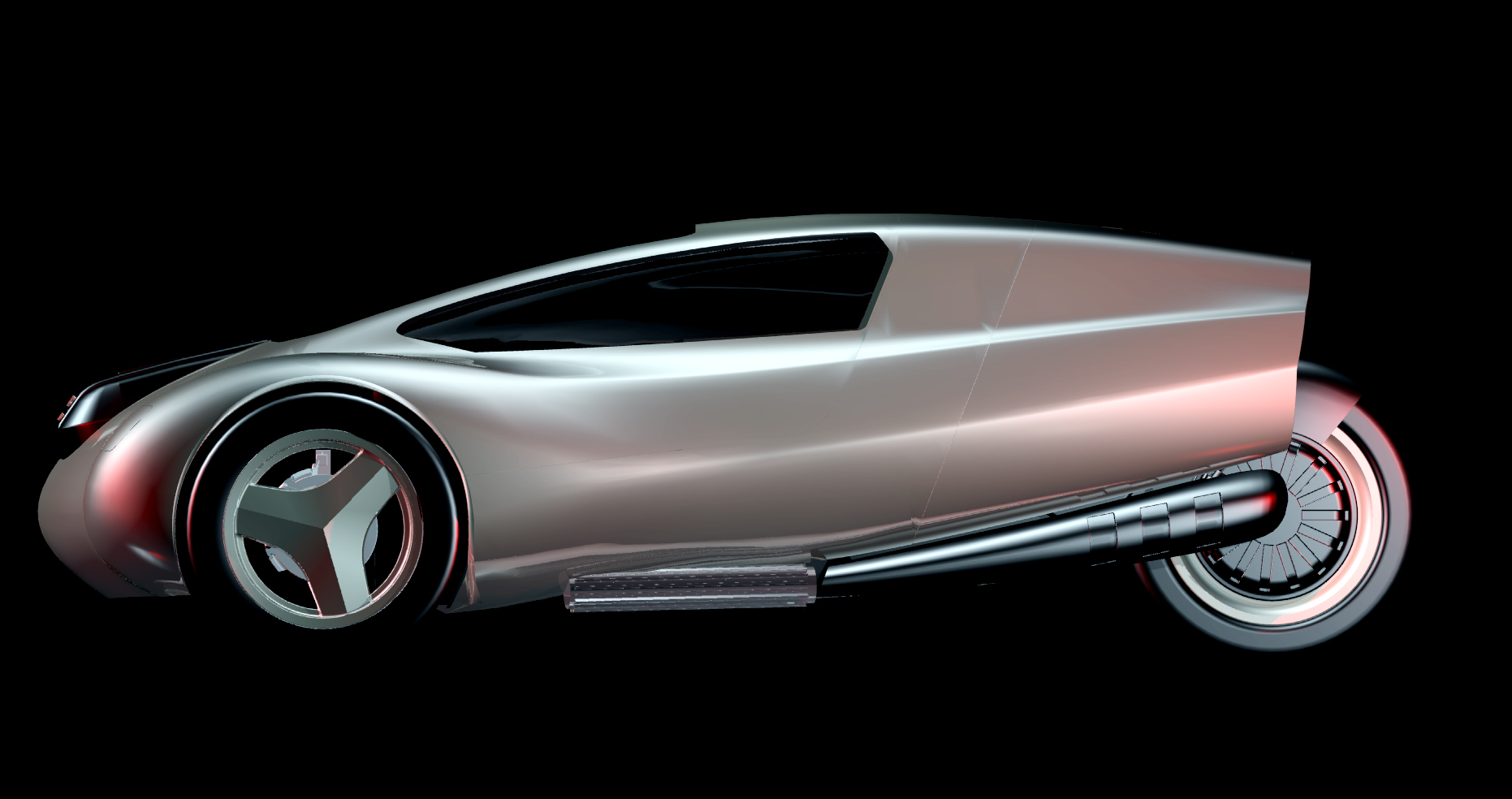 The XR-3 uses the latest hybrid power system technologies in the most simplified way possible. While the front wheels are powered by a three-cylinder diesel engine, a single rear wheel uses an electric motor run by a lithium-ion battery. The ground provides the connection between the two systems, eliminating the need for a complex electronic and mechanical interface.
