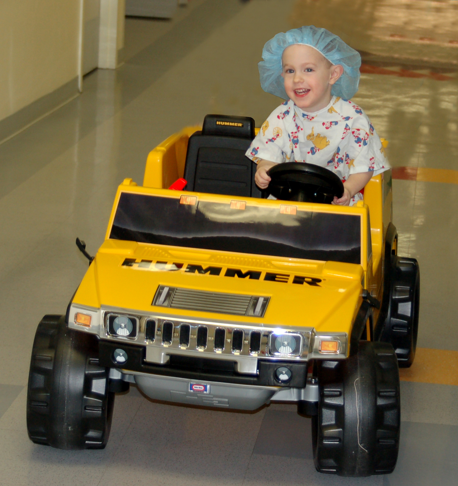 The vehicles are being donated by Hummer dealerships under a program called “Courageous Kids.” The mini-sized vehicles are used by young patients who may “drive” themselves into surgery or for other medical procedures. The goal of Courageous Kids is to help reduce the anxiety that frightened children often experience when undergoing medical treatment.