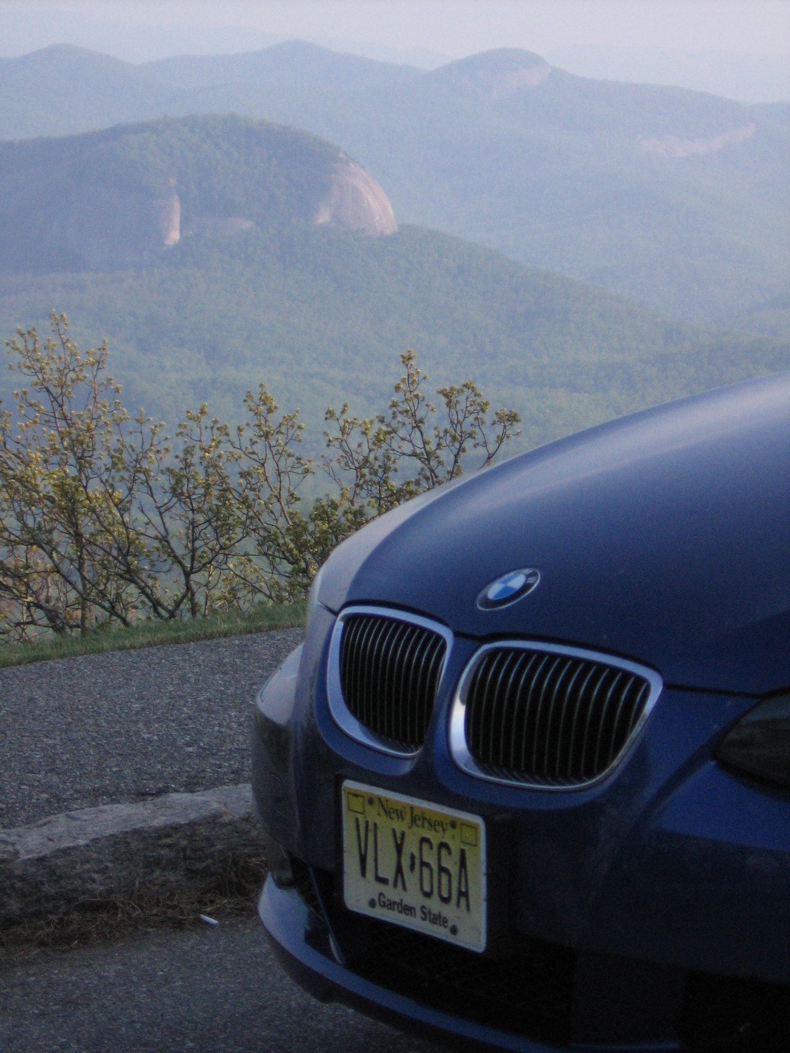It was dark by the time we came down from that hike. The dust was flying on the dirt road but we were back on smooth pavement in no time. The top was down as the tiniest crescent of a moon appeared. Ain’t open-air motoring grand? We passed a large glowing mound of honeysuckle on the ditch bank and the sweet aroma wafted into the car. The BMW’s Xenon adaptive headlights burned back the dark in bright mode and showed our way around the tight corners of the mountain roads taking us back to our base at Sapphire Valley.