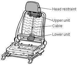 ![]() The lower unit built into the seatback recognizes when the occupant's lower back presses against the seatback; it then triggers the upper unit, via a cable, to activate the head restraint. |