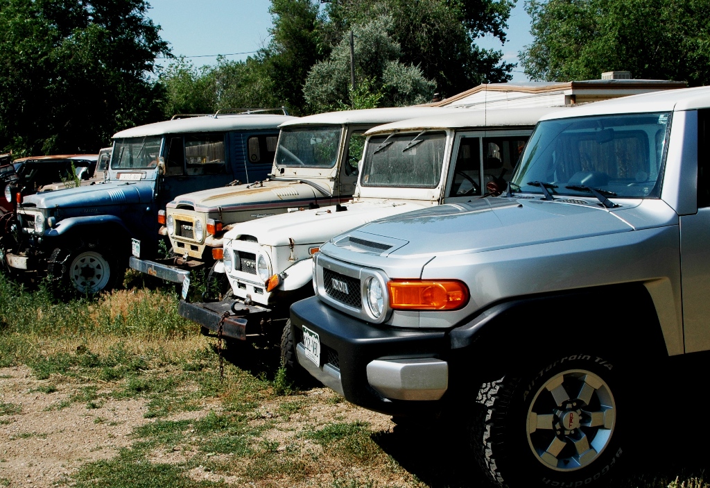 The silver FJ Cruiser looks pretty cool parked at the curb. Based on the old FJ 40 Land Cruiser it’s one of those unique retro designs that is polarizing. Some love it (like me) and some hate it. Any good designer will tell you that engendering controversy is one element that distinguishes a good design. Sure, it may be a bit cartoonesque, or too retro for some, but for me – and many others, I dare say – it’s just plain cool. The lateral protrusions from the front bumper look like little tusks and the simple round headlights compliment this “design with a sense of humor,” I’ll call it. But for me the designers at the Toyota Calty Design Center in California have done a wonderful job of taking a necessarily high-off-the-ground, boxy sport-utility vehicle and making it into something really fun to look at. Toyota has been making Jeepy things since at least the early fifties and this one imitates – or we should say updates – the design themes of the late fifties and sixties - a design as recognizable in much of the world as are the iconic old Land Rovers.