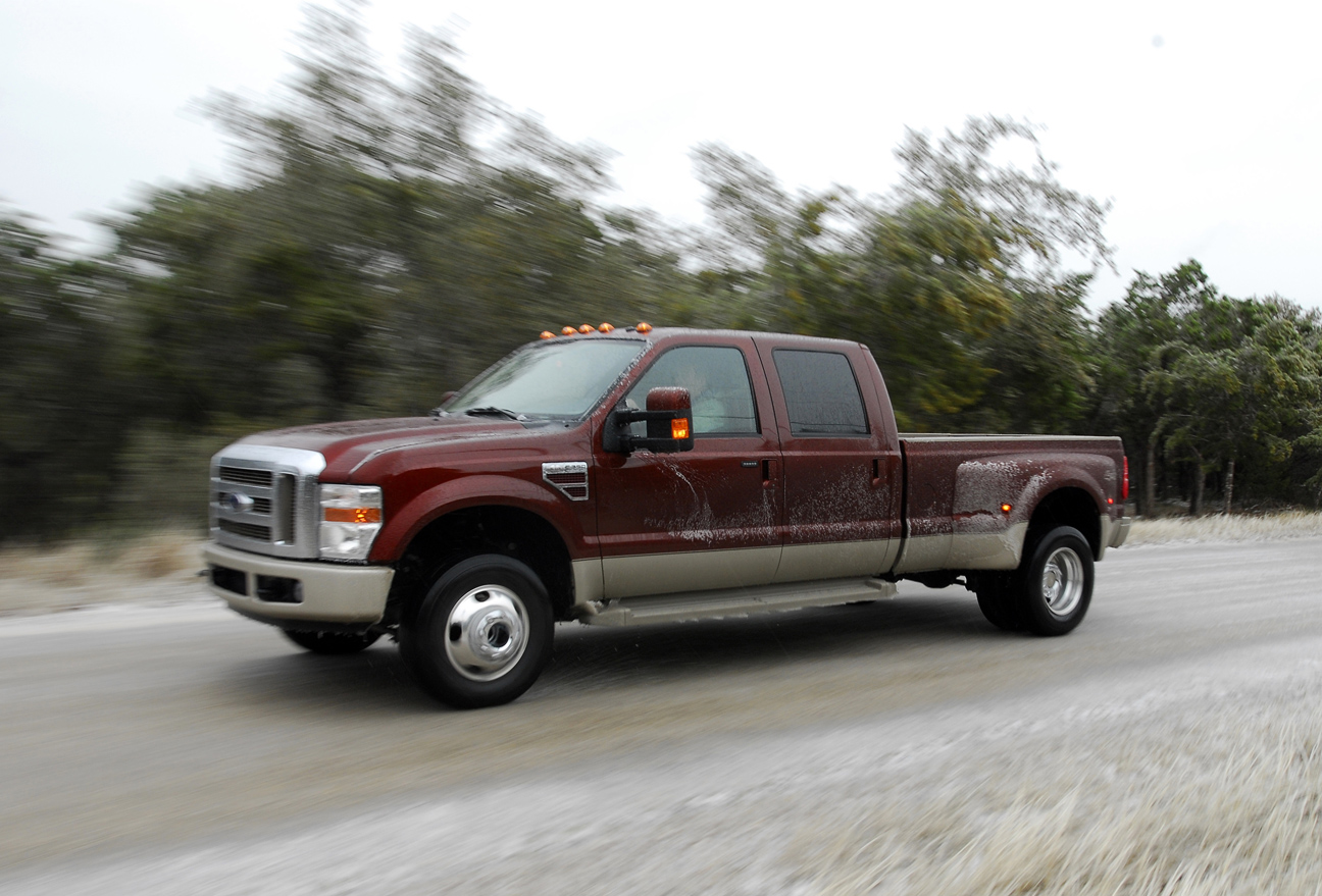 The new 6.4-liter fired up quickly in the freezing temperatures that Texas served up for our drive in the line-topping King Ranch Crew Cab 4x4. (This is significant, as Diesel engines didn’t used to like to start when cold.) Unladen, the ride is firm but not harsh. The engine is so quiet that conversation is easy, even when the speedo indicates 80 miles per hour. Truly massive thirteen-plus-inch discs haul the rig down with little drama. For its size, the F-450 proved reasonably responsive, with our only issue being the steering’s on-center dead zone. This is an unfortunate characteristic of its heavy-duty recirculating-ball steering gear, but feel and feedback built quickly when steering was dialed in.