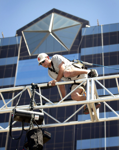 ![]() Workers prepare the lawn area outside the Chrysler World Headquarters for the Monday, August 6, scheduled employee celebration, marking the "First Day" of The New Chrysler. |