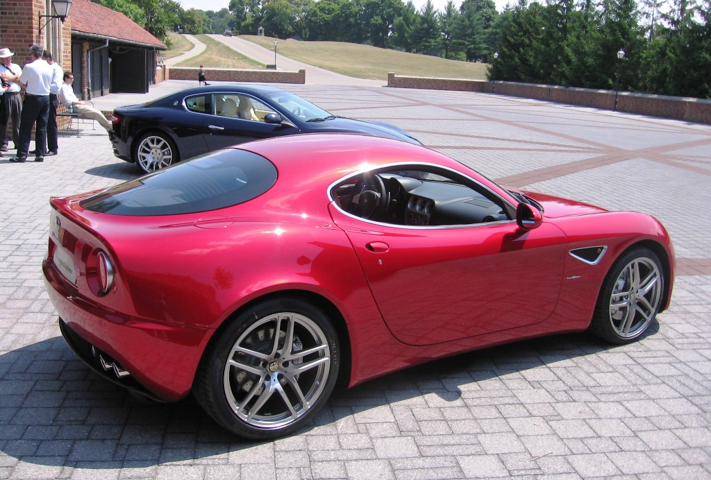 I wish this were a road test, but I must admit that I couldn’t talk my way behind the wheel of this, one of the sexiest red sports cars I’ve ever seen. It came roaring in the circle drive in front of the magnificent Meadow Brook mansion at the end of the short lead press conference for the most prestigious classic car show east of Pebble Beach. The Meadow Brook Concours d’Elegance is featuring Alfa Romeo this year and in honor of that honor the Italians are announcing that Alfa is coming back to the US market.