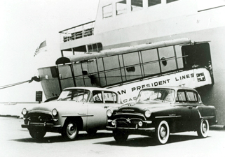 ![]() Two Toyopet Crowns wait to be loaded for export to the U.S. |