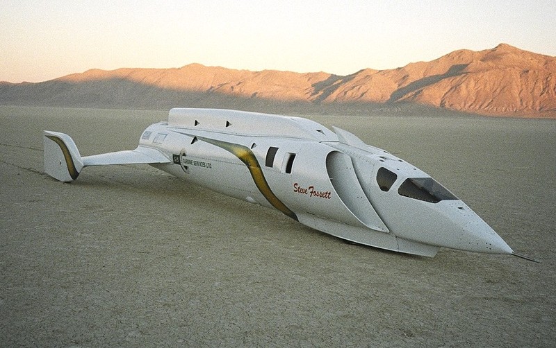Despite the loss of their founder, the team is continuing in Steve Fossett's name to capture the Absolute Land Speed Record in excess of 800MPH. The streamlined Fossett racer is 48-feet long and is powered by a single, 40,000 HP S&S Turbine LM-1500 jet engine.