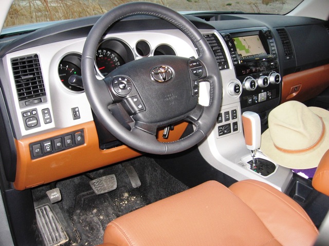 Toyota Sequoia, by the way, comes in three iterations beginning with the entry level SR5 with a base price of $34,150, then the mid level LTD at $45,255 and this Platinum at $52,375. The 4-wheel drive is optional on all. Our tester stickers out at $58,930 with the optional rear seat entertainment system and a few other small options.