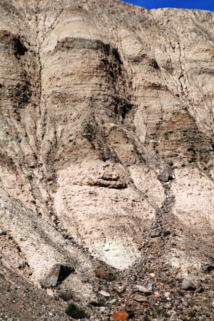 Across the road from the eatery an interesting desert phenomenon demanded our attention, mostly because my pretty blonde had not experienced it before. Known locally as the Caliche Condos these odd residences are literally caves dug into the soft ancient mud cliffs wherein people actually lived right into the 1970s. One has a nicely domed roof inside. Another has a garage. Minors lived mighty close to the bone here not too many years ago.