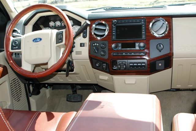 I was pleased to have an opportunity to spend a little quality time with one of these great trucks this week – an F-350 4X4 Crew Cab Duelie. This is a beautiful, big truck. And I mean BIG - eight feet wide at the rear wheels, over 3 ½ tons curb weight. It’s so big I ran over the edge of my flower bed getting out of the driveway. Fortunately, I didn’t run over any of the cats. If you’re one of those lucky people able to justify and afford this decked out truck I hope you have a generous driveway.