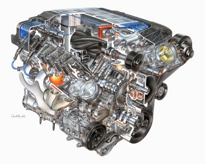 - Stronger, rotocast cylinder heads with 2.16-inch (55 mm) titanium intake valves and 1.59-inch (40.4 mm) hollow-stem, sodium-filled exhaust valves